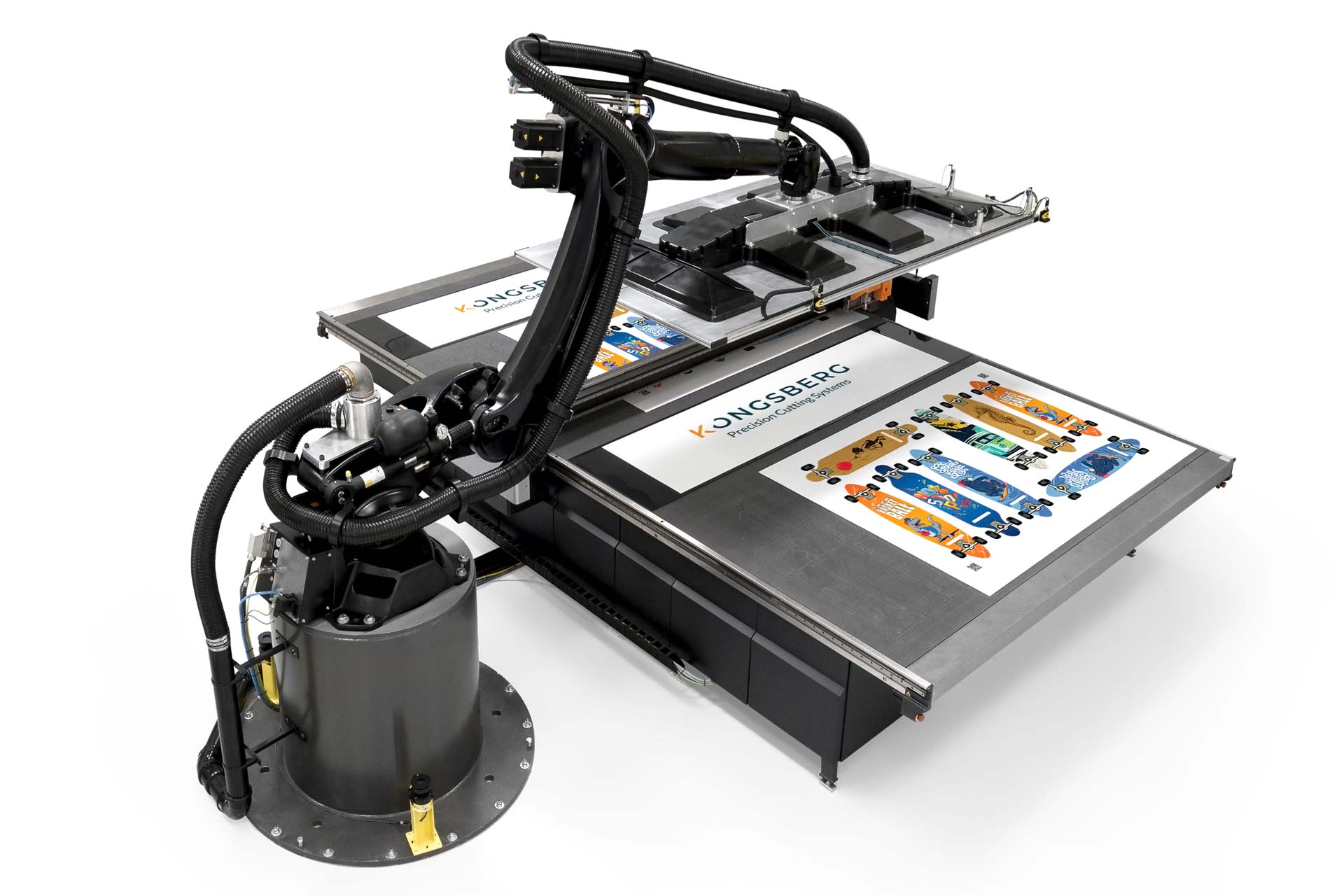Kongsberg X so najbolj vsestranske rezalne mize, ki obdeljujeo od najtanjših folji do najtrših materialov in pene do 88mm debeline ter posebnih aplikacij, kot npr. mikrometrski natančni izrez ofsetnih lakirnih gum.