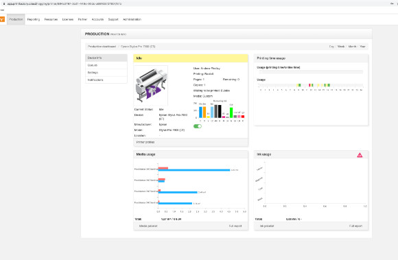 Nadzorna plošča v oblaku PrintFactory vam pokaže, kje lahko spreminjate v realnem času, da omogočite hitrejšo in pametnejšo proizvodnjo. Ta varna nadzorna plošča ponuja vso analitiko in poročanje, ki jih potrebujete za tiskanje velikega formata v vsaki panogi.
