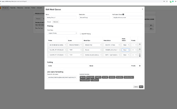 PrintFactoryjevo orodje za gnezdenje Just-in-Time vam omogoča pametne, samodejne spremembe ali ročne prilagoditve opravil do zadnje sekunde, ne da bi upočasnili proizvodnjo. Zmanjšajte stroške medijev. Pospešite potek dela.
